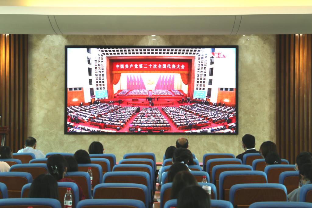 (通讯员 孔祥任)10月16日上午,中国共产党第二十次全国代表大会在人民大会堂隆重召开。太阳成官网组织党员师生于腾龙楼515报告厅集中观看中国共产党第二十次全国代表大会开幕会。院党委书记李泳波,院党委副书记李蜜,副院长蒋莉华、司徒皓,专职组织员易小源等到场观看。