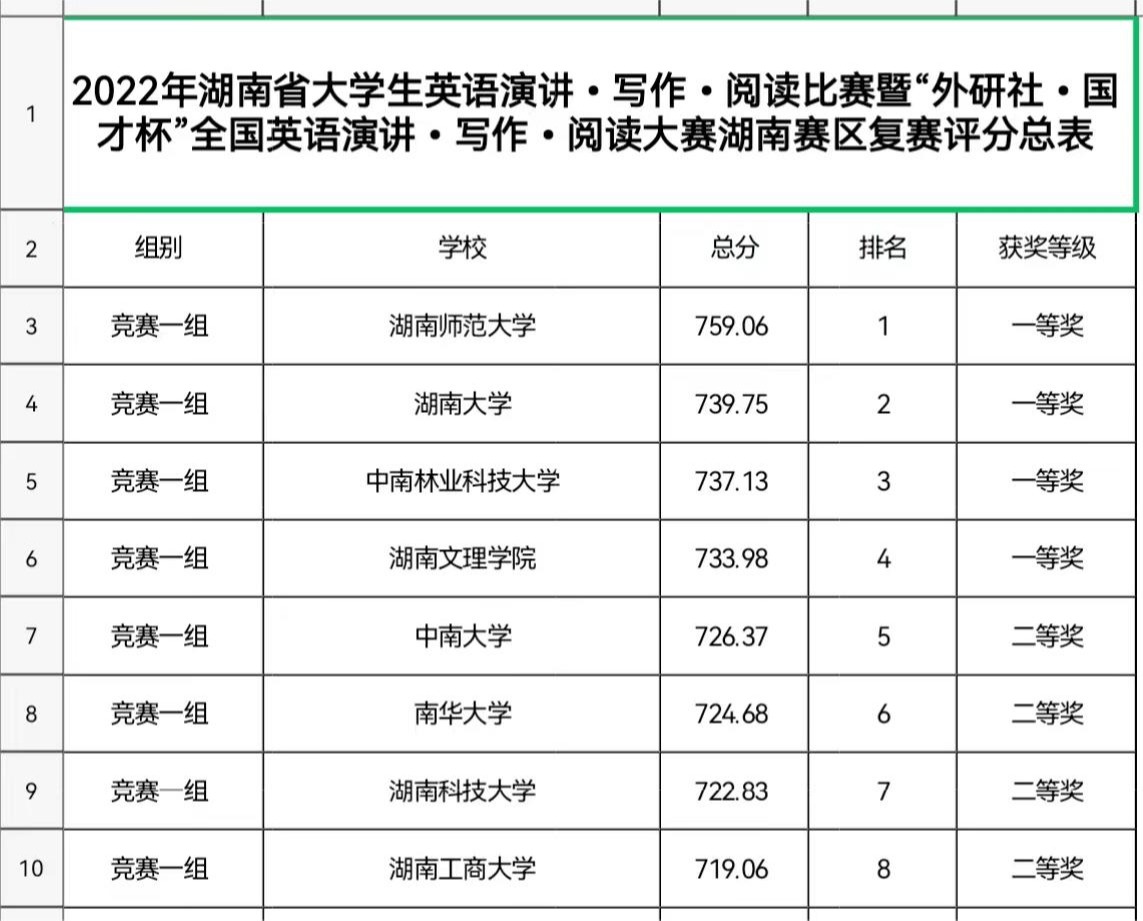 11月18至20日,由湖南省教育厅主办、湖南科技大学承办的湖南省大学生英语演讲•写作•阅读比赛暨“外研社•国才杯”全国英语演讲•写作•阅读大赛湖南赛区复赛在云端举行,省内52所高校参赛。此次比赛,我校代表团队表现优异,捷报频传。