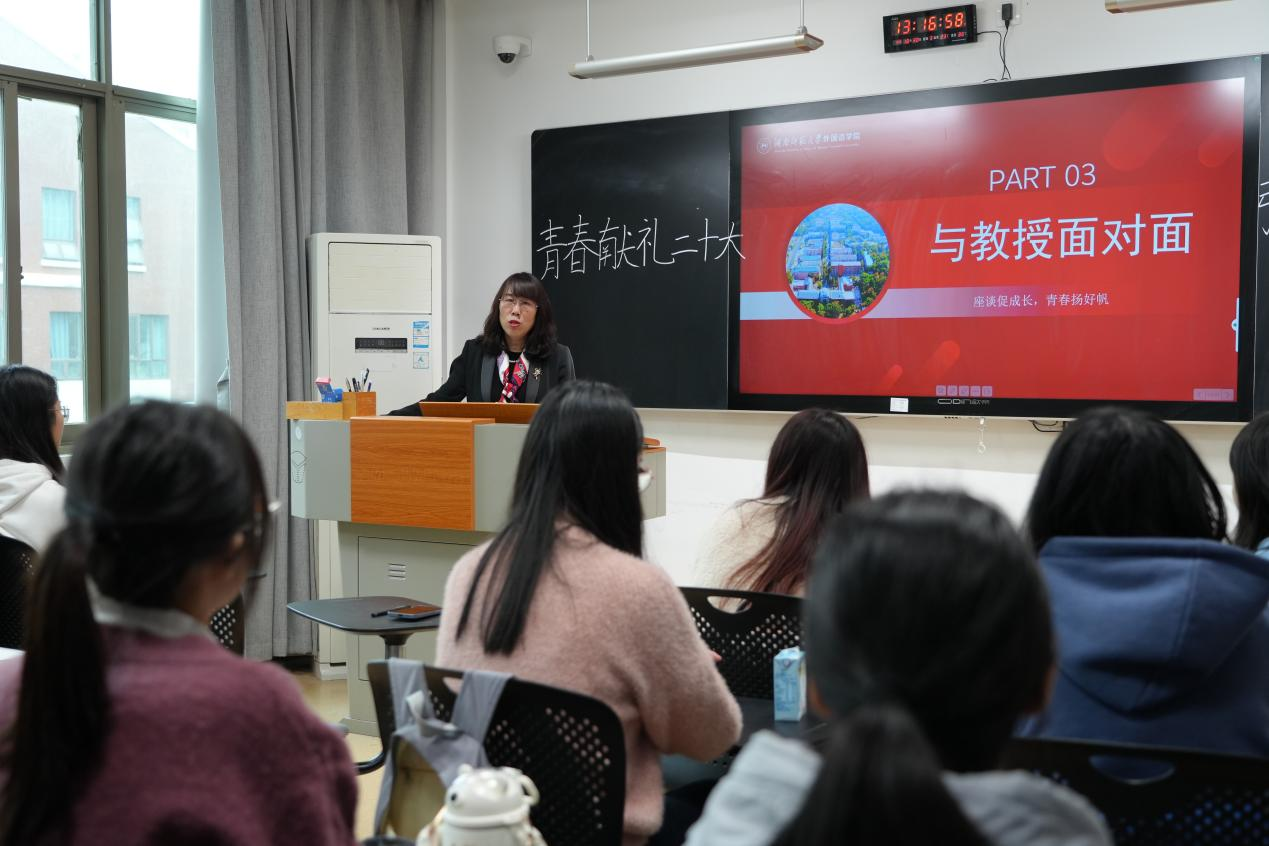 太阳成官网院长曾艳钰在太阳成官网2020级英语一班开展的主题思政活动中与同学们就基础外语教育话题展开交流,她结合自身经历,强调了基础外语教育工作的重要性,希望同学们珍惜在校时光,提升专业素养,在未来成为优秀的中学英语教师。