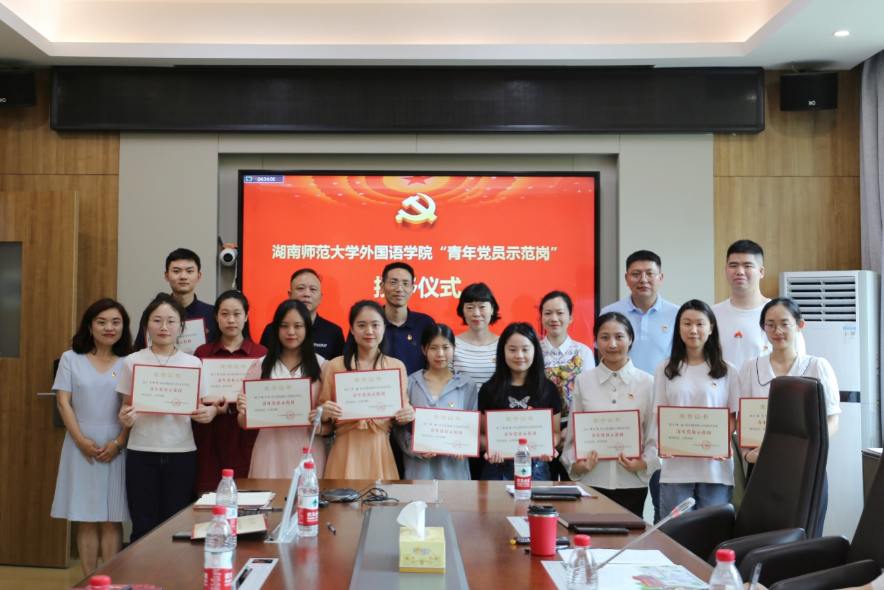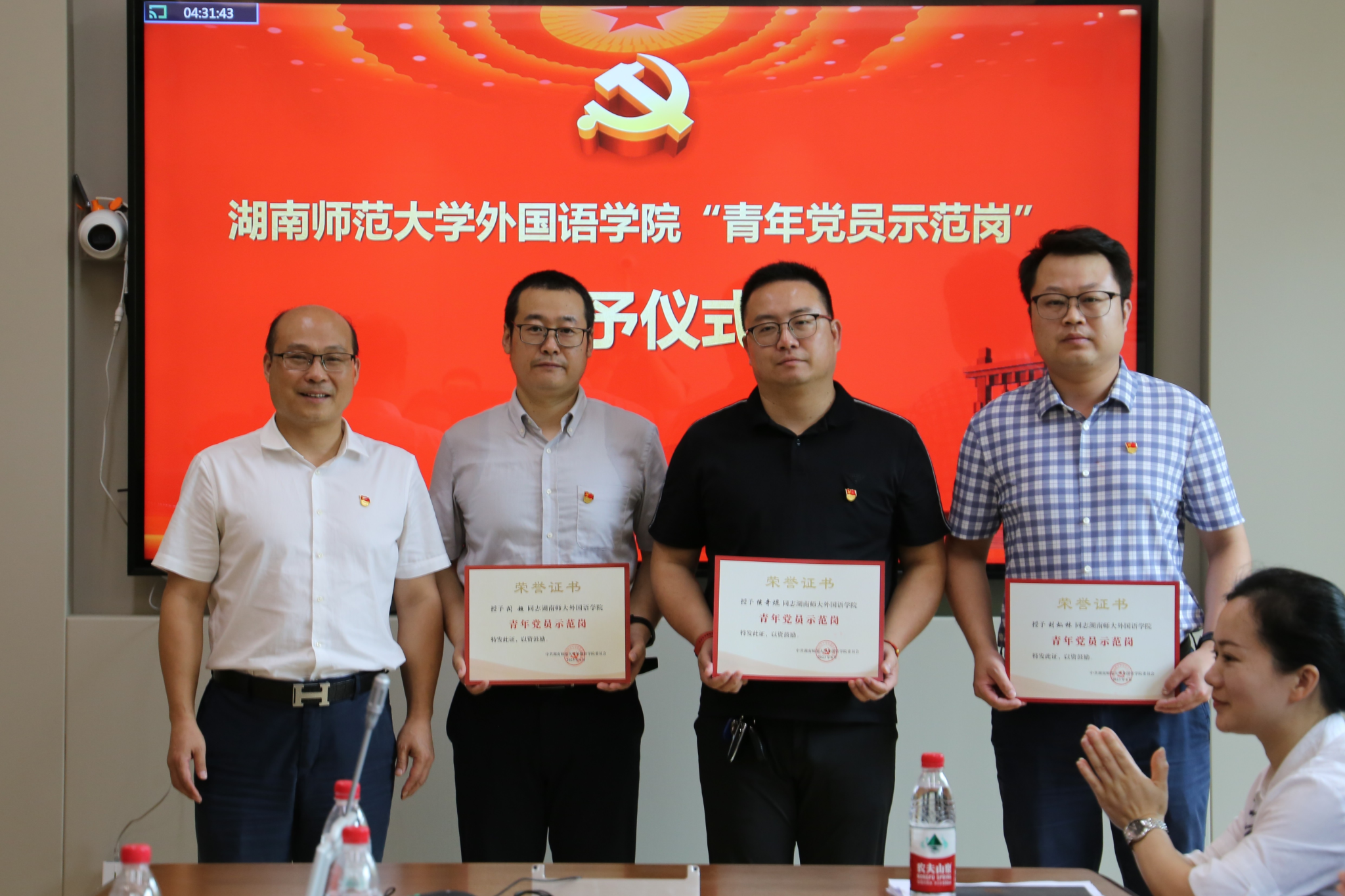 学院领导为各党支部获奖党员颁发“青年党员示范岗”荣誉证书。