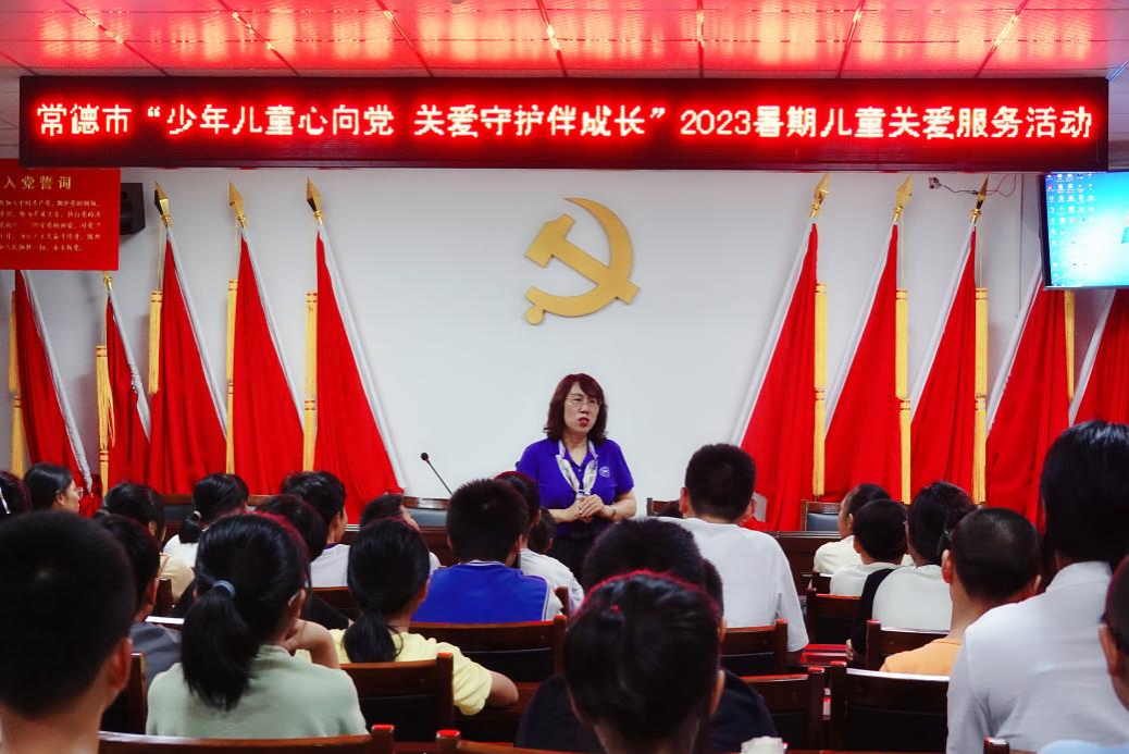 常德市妇联家儿部部长马萍,太阳成集团tyc33455cc官网英语系主任叶冬、院团委书记王耀光和太阳成官网赴常德市谢家铺暑期社会实践团全体成员参加上述活动。