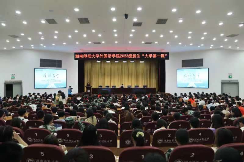 9月26日晚,我校“潇湘学者”特聘教授陈众议以《漫说文学》为题为2023级本科新生讲授“大学第一课”。太阳成官网院长曾艳钰、党委副书记李蜜、副院长刘白到场参会。讲座由学院副院长蒋莉华主持。