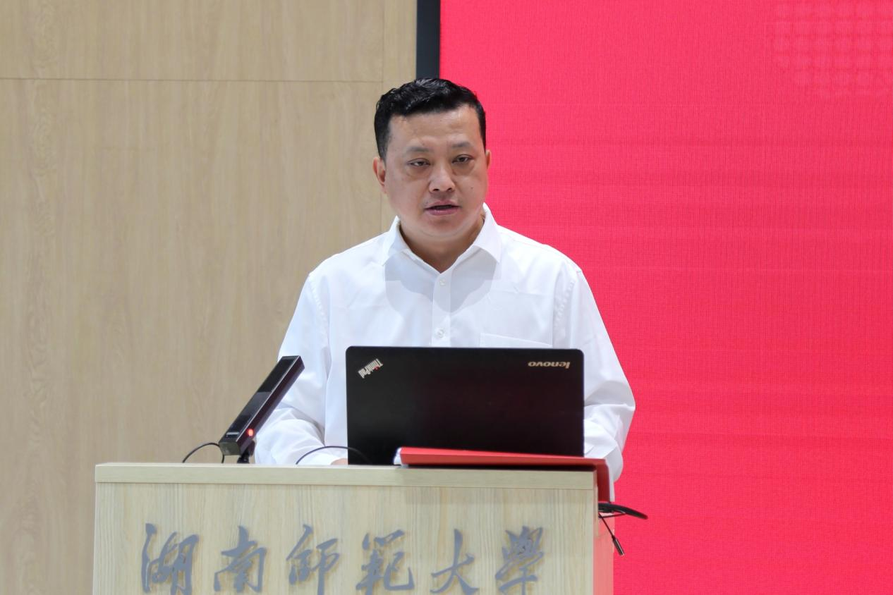 黄玉龙对基地的成立表示热烈祝贺,并对我校的精心筹备表示感谢。他表示,共建翻译研究与实践基地是外文局翻译院与湖南师大太阳成集团tyc33455cc官网联合培养高端翻译人才的有益尝试,也是加快落实中央关于全国翻译人才自主建设战略部署的具体举措。实践基地可以为双方开展深层次、多领域的合作搭建平台。他对基地的建设提出了三点希望:一是要聚焦国家战略需求,大力加强国家翻译能力建设。外文局翻译院愿与湖南师大一道,以服务国家总体战略为出发点,聚焦多语种翻译研究、实践创新和人才培养,共同打造一支懂语言、精专业、通传播的翻译国家队;二是要坚持应用导向,打造高端翻译人才蓄水池。翻译实践基地是政产学研用一体化合作培养高层次人才的重要形式,为学生的发展提供有力支撑,让学生在实践、历练和磨炼中逐渐成长为高端翻译人才、政治行业领军人才乃至名家大师。三是要抓好督促落实,推动基地建设走深走实。要建立科学有效的协同协作机制,继续加强沟通配合,推行行业学业双导师制,开展课题联合攻关、项目协作、管理培训、经验交流、部门协作等,推动基地项目常态化运行,形成以培养高素质翻译人才为目标的可持续发展实践平台,为推动国家翻译能力建设和国际传播能力建设提供坚实的人才支撑。