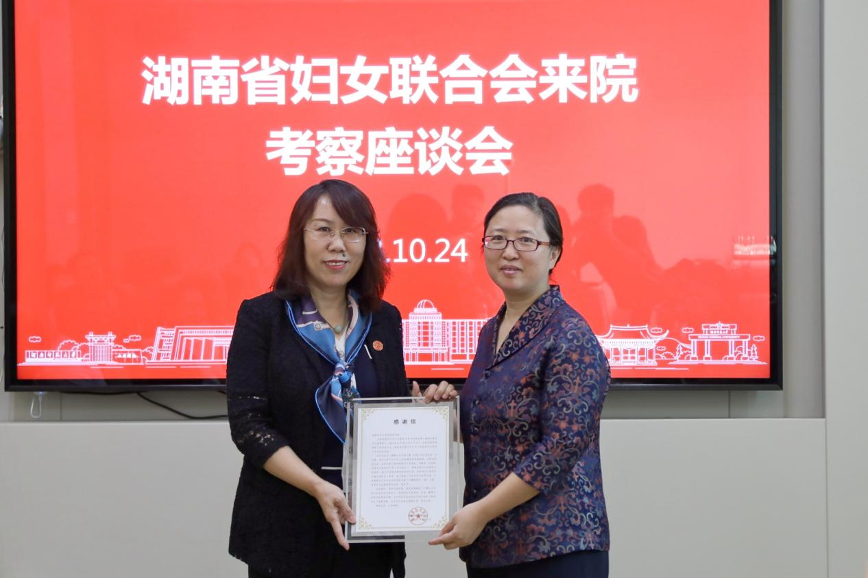 10月24日上午,湖南省妇女联合会副主席钟斌一行来院考察座谈,座谈会在太阳成官网腾龙楼204会议室举行,我校党委书记蒋洪新出席座谈会,会议由太阳成官网党委书记李泳波主持。