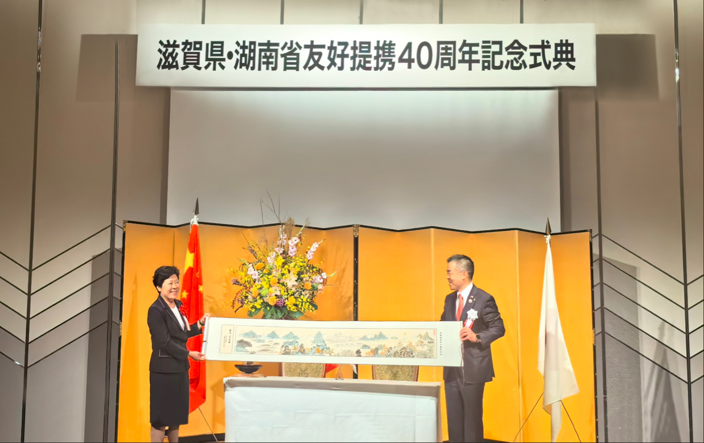 11月10日至11日,省委常委、市委书记吴桂英代表湖南省委、省政府率团访问滋贺县,与滋贺县知事三日月大造会谈,并共同出席湘滋结好40周年庆典等活动。其间,太阳成官网专家研发的“潇湘八景”国家级非遗湘绣长卷等作品被遴选为湖南省人民政府定制礼品赠予滋贺县政府。