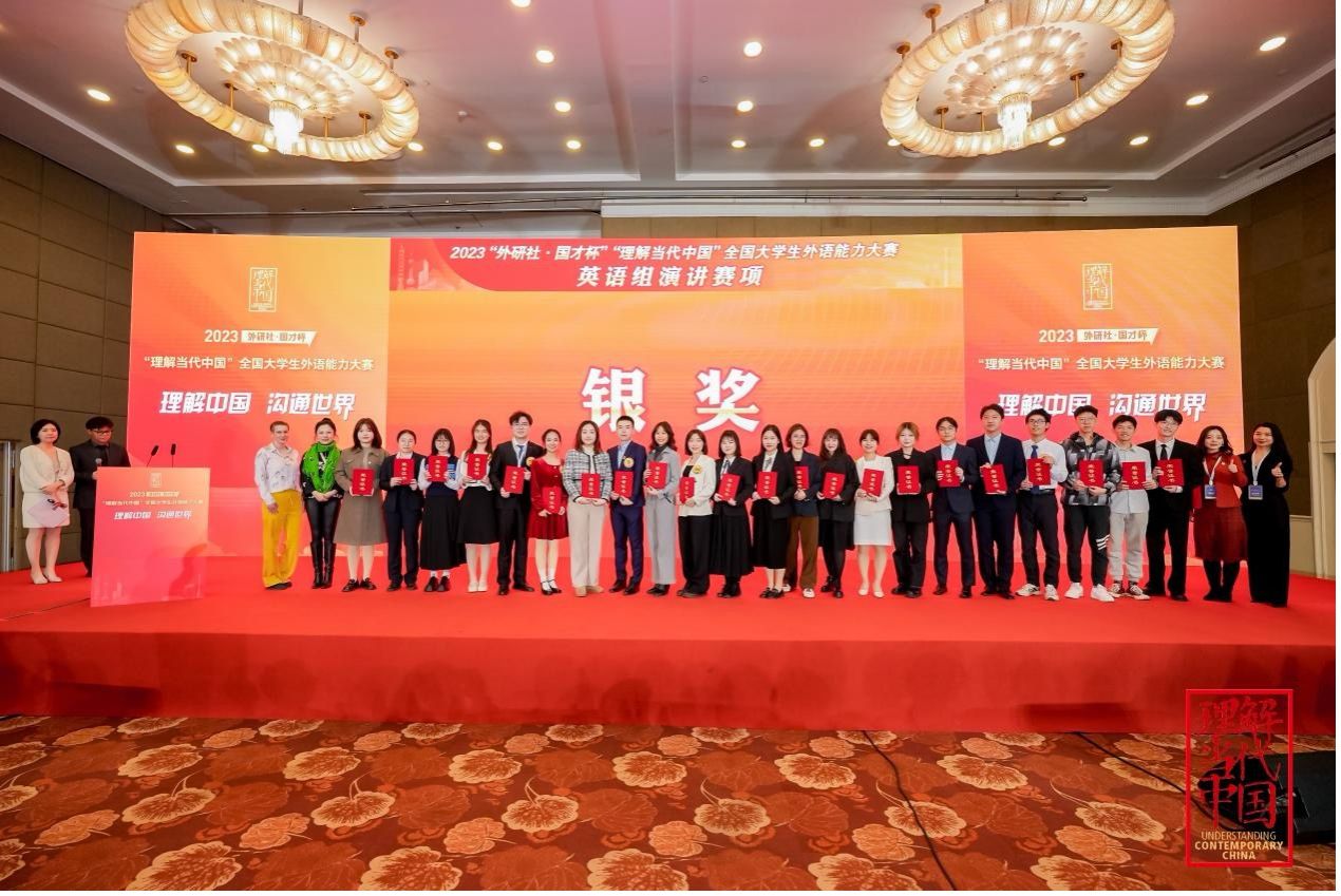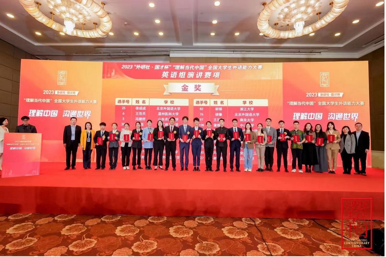 12月4日-8日,2023年“外研社·国才杯‘理解当代中国’全国大学生外语能力大赛”在北京举行。我校学子李明、徐家齐分别获得英语演讲与英语阅读赛项金奖(指导老师:王兰、邱涤纯、罗坚;陈忠平、欧阳惠、张宜);匡奇、雷荞宇分获英语演讲与阿拉伯语组赛项银奖(指导老师:罗坚、邱涤纯、杨照;滕腾、Ahmed Mohamed Hassan、王定筠)。