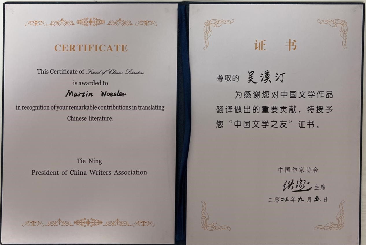 2023年9月5日,中国文学国际传播论坛暨第六次汉学家文学翻译国际研讨会在南京举行。我校潇湘学者特聘教授吴漠汀(Martin Woesler)在该论坛上荣获中国作家协会颁发的“中国文学之友”奖。作为全球仅有的13位汉学家和中国文学翻译家之一,荣获此奖项是对其三十多年来在中国文学翻译和传播领域所做出的杰出贡献的高度认可。