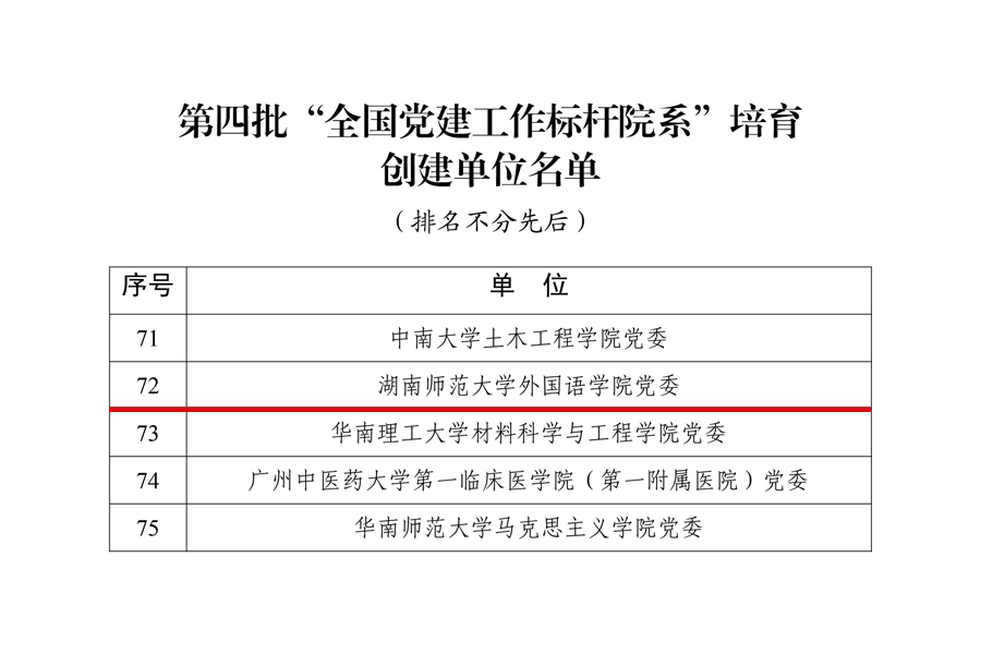 学院将以入选“全国党建工作标杆院系”培育创建单位为新起点,强化党建示范创建和质量创优,注重目标管理和过程管理,加强示范引领和成果推广,将学院党委建设成为“湖湘本色、外语特色、品质一流”的全国高校党建工作标杆院系,为世界一流学科建设和学院高质量发展提供强有力的政治保障、思想保障和组织保障。