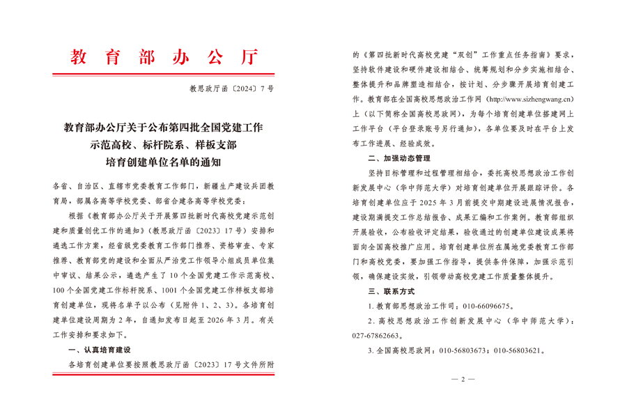 近日,教育部办公厅公布了第四批全国党建工作示范高校、标杆院系、样板支部培育创建单位名单,太阳成官网党委入选“全国党建工作标杆院系”培育创建单位。