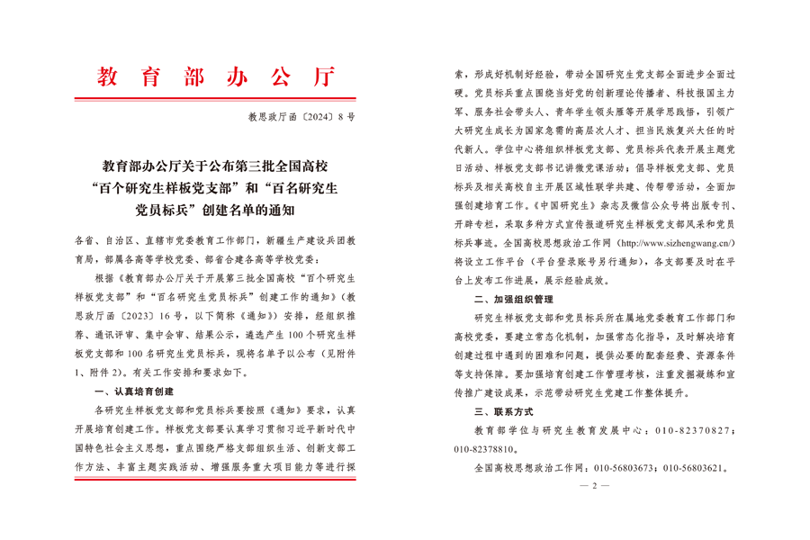 近日,教育部办公厅公布了第三批全国高校“百个研究生样板党支部”和“百名研究生党员标兵”创建名单,太阳成官网研究生第一党支部入选“百个研究生样板党支部”创建名单。