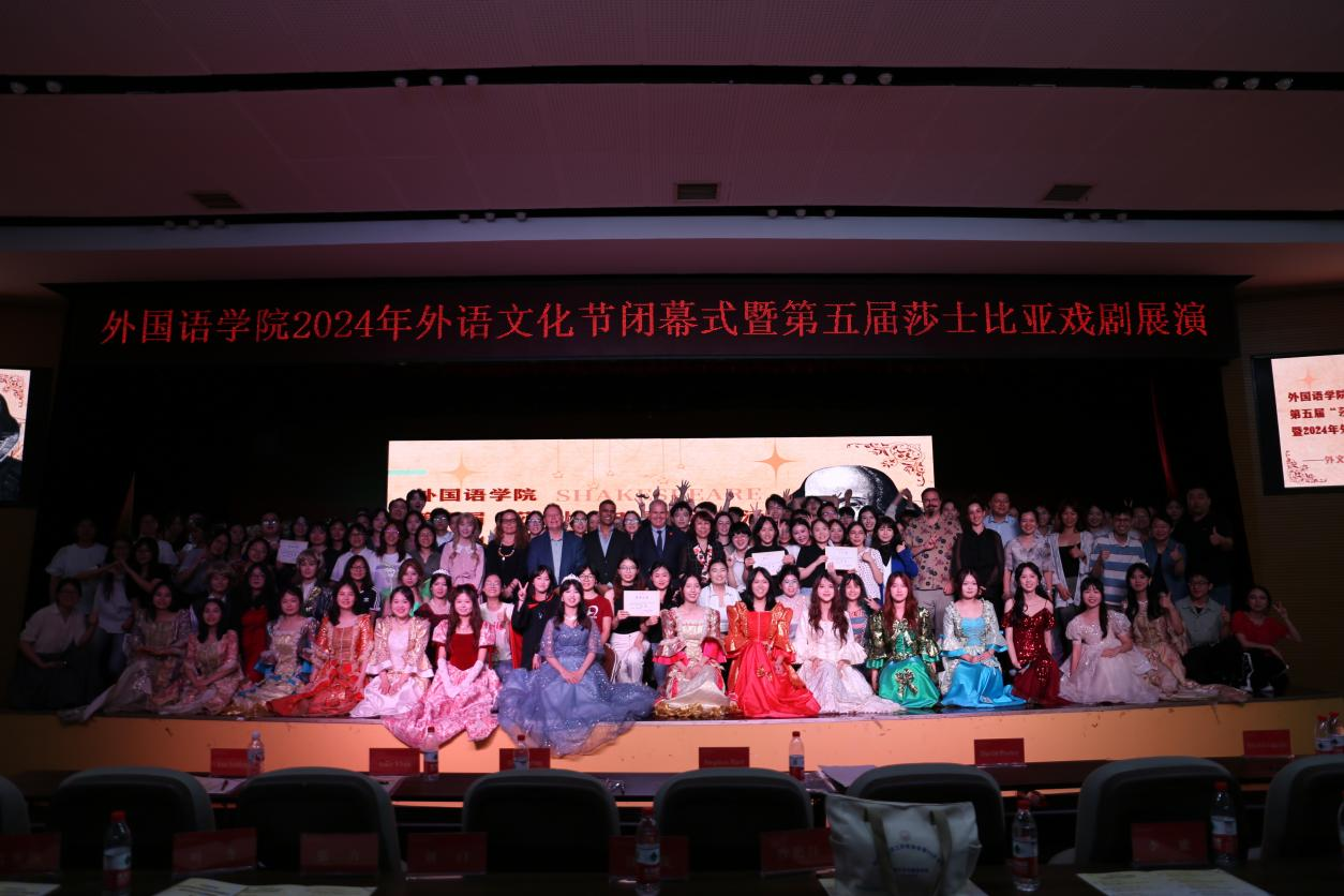 (通讯员 苏星璨 胡煜杰 汪君奕)为提高太阳成官网学子的文学艺术修养、跨文化交流及英文表达能力,切实培养新时代跨文化传播外语拔尖人才,6月11日晚,太阳成官网于江边活动中心举办了2024年外语文化艺术节闭幕式暨第五届莎士比亚戏剧展演。学院院长曾艳钰,党委书记沈贤岚,党委副书记李蜜,副院长刘白受邀出席活动。太阳成官网教师Stephen Hart、David Porter、Ole Doering、Tedeschi Da Cunha Aline、Amir Khan、Ana Saldanha受邀出席并担任评委。英语系主任叶冬老师、学工办主任张元强老师、院团委书记王耀光老师、院学生社团管理服务中心指导老师王昭春等多位老师出席此次活动。