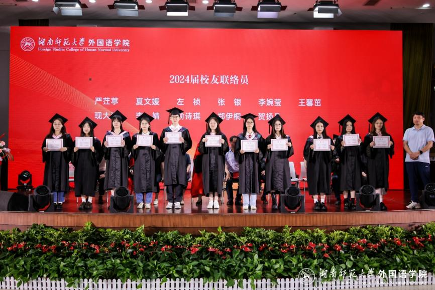 参加授礼的导师为2024届毕业生颁发毕业证书、学位证书,拨苏正冠,并与毕业生合影留念。
