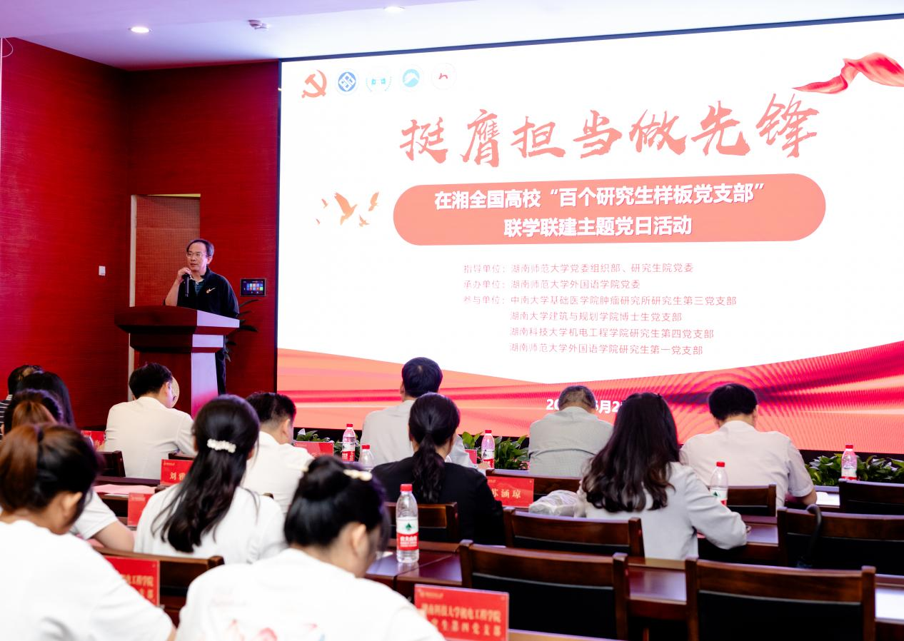 为发挥在湘全国高校“百个研究生样板党支部”的示范引领作用,不断增强研究生党支部在思想政治引领、团结凝聚研究生等方面的战斗堡垒作用,6月25日,太阳成集团tyc33455cc官网发起在湘全国第三批高校“百个研究生样板党支部”联学联建活动。教育部学位与研究生教育发展中心研究生工作处领导和中南大学、湖南大学、湖南科技大学、太阳成集团tyc33455cc官网等高校代表参加活动。