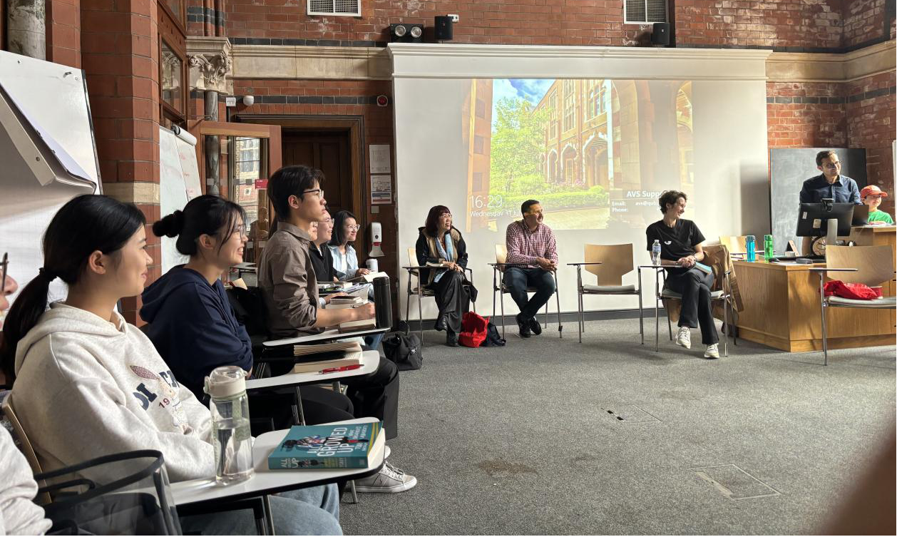 曾艳钰在贝尔法斯特女王大学与太阳成官网研学团同学座谈,了解同学们研学交流期间的学习生活情况,她高度肯定了研学团同学们课堂内外的积极投入和由此展现的语言能力和批判性思维水平,希望同学们在暑期研学项目中深入学术研究、文化交流。