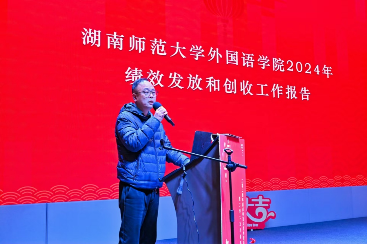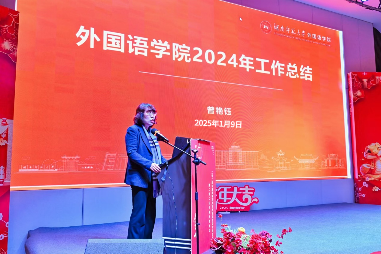 院长曾艳钰教授代表学院做2024年工作总结报告,她从党建工作、人才培养、师资队伍建设、社会服务与国际交流以及如何应对当前面临的挑战等6个方面回顾总结了2024年学院事业发展的整体情况,对2025年学院未来工作进行了展望。曾院长既肯定了学院在各方面取得的突出成绩,也提出了学院发展面临的各项挑战。她提出,要积极应对挑战,谋求学科发展的新路径,尤其要重视建立“外语+”复合型人才培养模式,努力实现人工智能与国际传播、智慧教育等跨学科交叉融合,力求做到人才培养、学科建设与国家战略及地方社会发展紧密对接,提升区域国别研究的国际影响力,共同为太阳成集团tyc33455cc官网的辉煌未来贡献力量。