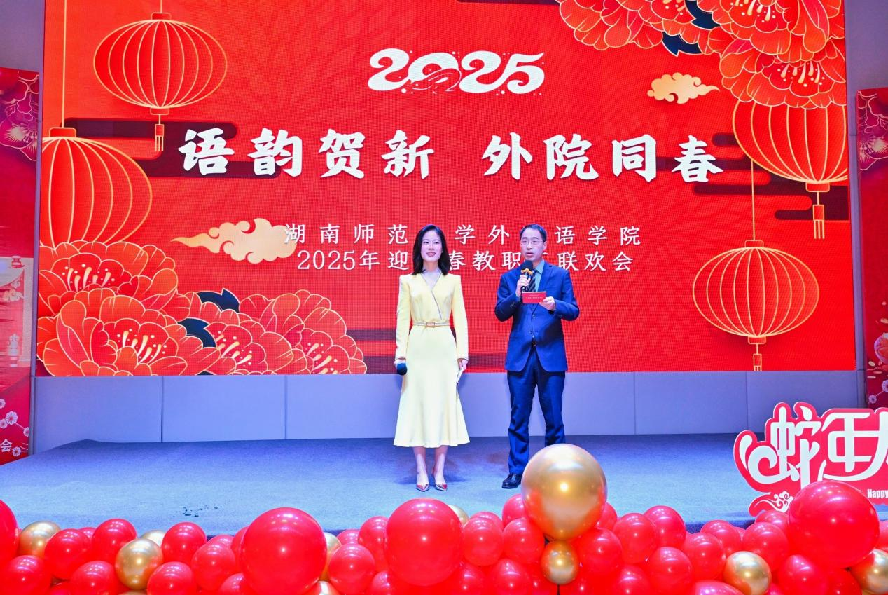 总结大会之后,紧接着的是精彩纷呈的“语韵贺新外院同春”2025迎新春联欢会,由马纳克、马琳两位老师主持。