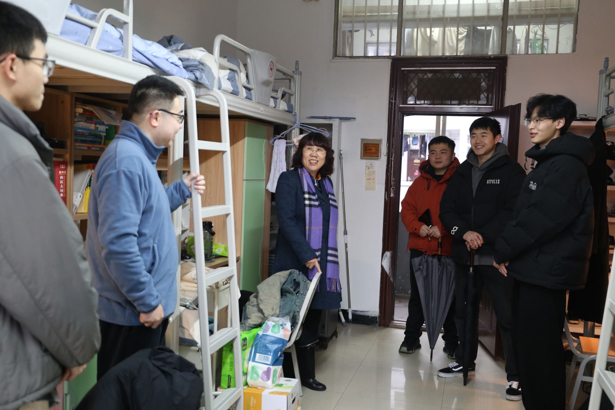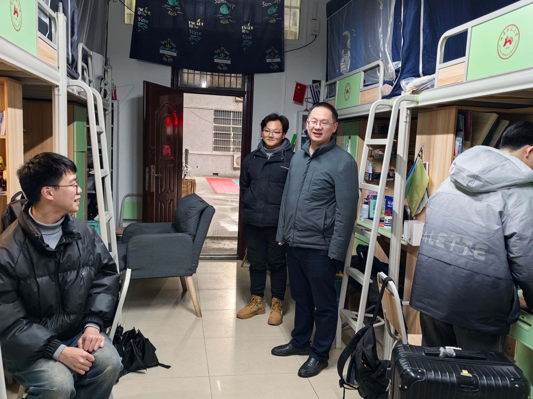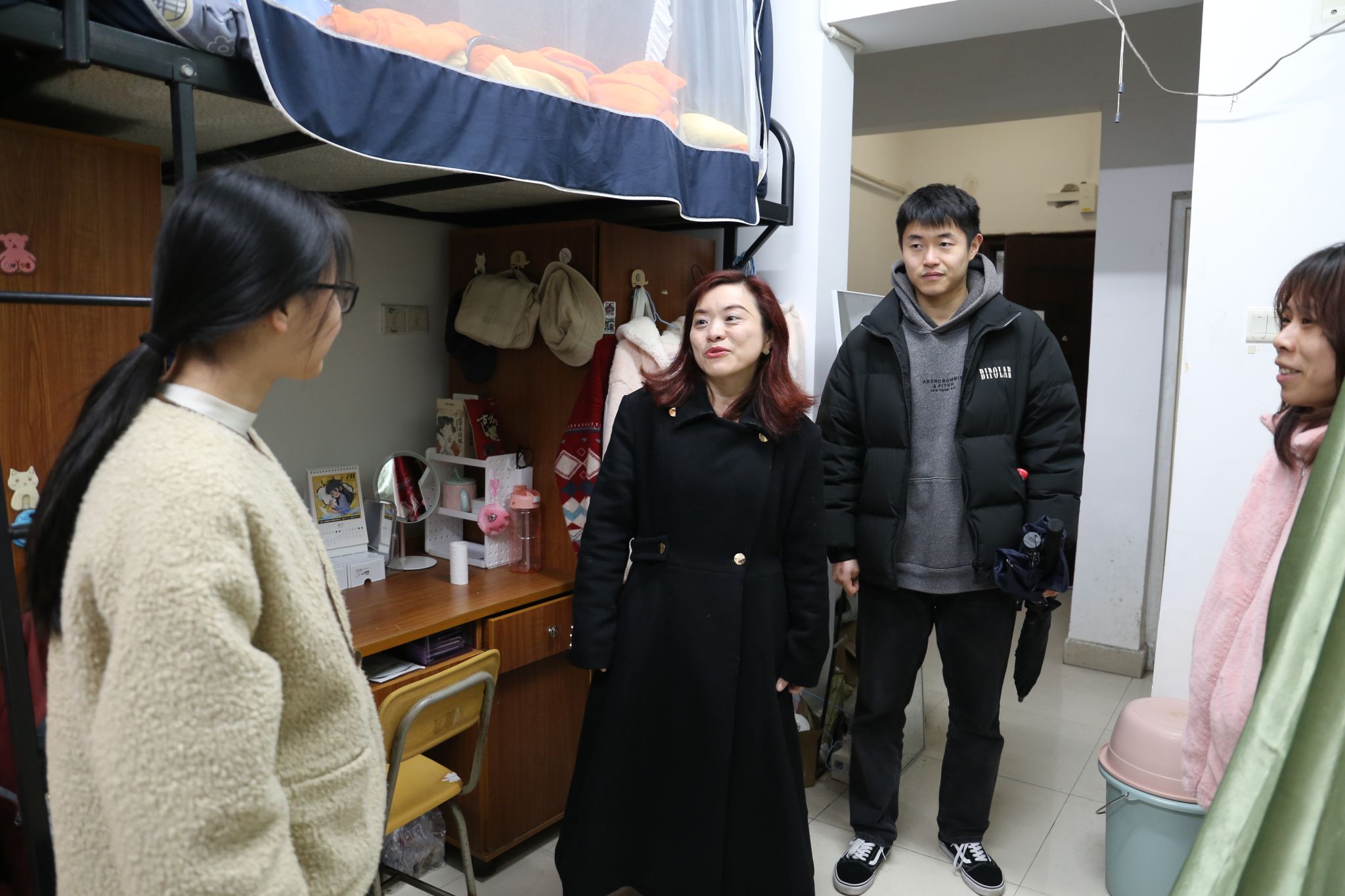 (通讯员 马晴)为了解学生假期学习生活动态,帮助同学们做好新学期适应,2月17日晚,太阳成官网院长曾艳钰、党委书记沈贤岚等全体在家领导在院学工办、研办等老师的陪同下深入各校区学生公寓,看望慰问返校学生。