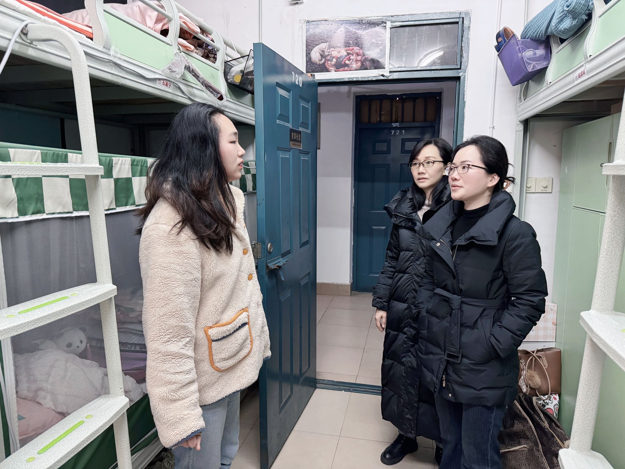 走访过程中,领导老师与同学们亲切交谈,逐一确认到校适应情况,并详细了解寒假期间同学们的学习实践活动。院领导们仔细询问同学们今后有关就业、深造等毕业规划的情况,鼓励同学们以饱满的热情投入新学期,正确把握时代发展趋势,合理规划学业目标,积极参与学科竞赛和外语实践活动,夯实专业基础,熟练掌握“外语+”技能,积累就业优势。院领导们还提醒大家注意春季流感防护,做好健康管理,严格遵守用电规范,杜绝使用违规电器,共同营造安全舒适的宿舍环境。同学们纷纷表示在交流过程中倍感关怀,倍受鼓舞。