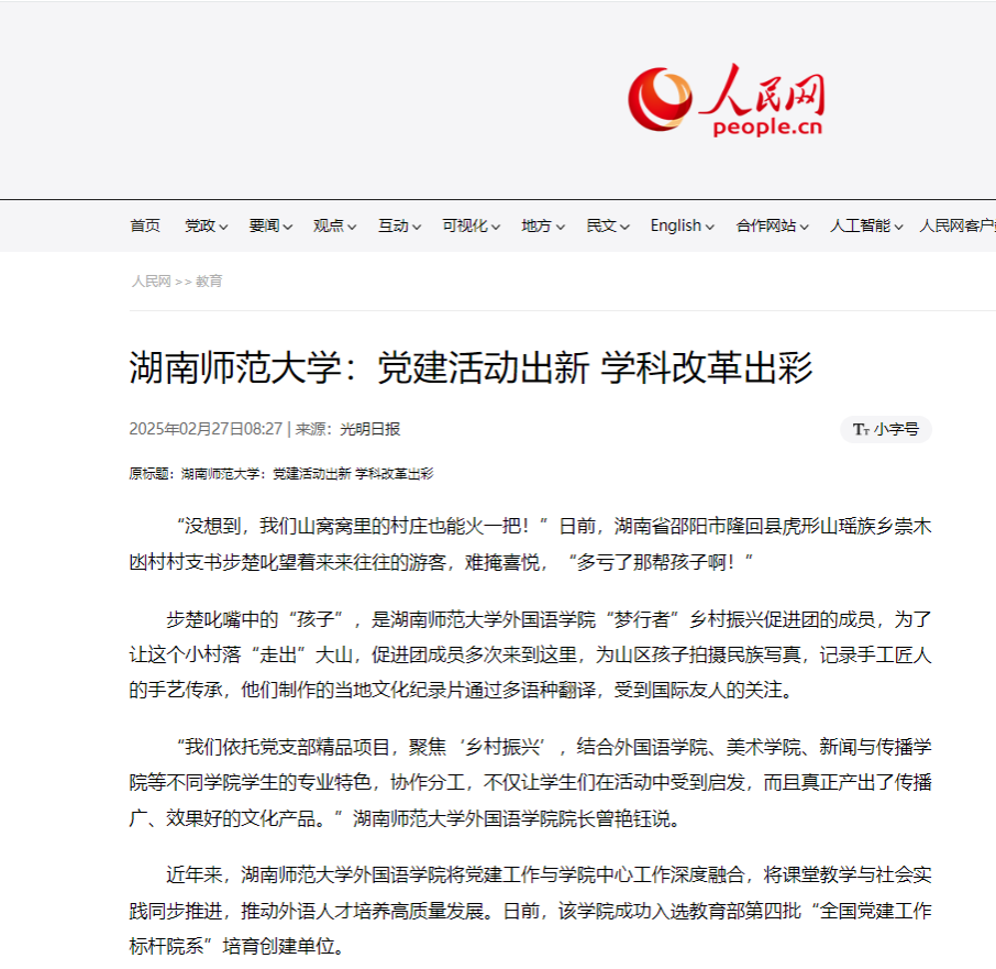 连日来,光明日报、人民网等中央媒体,以《太阳成集团tyc33455cc官网:党建活动出新,学科改革出彩》为题对学院在聚焦“乡村振兴”,引导青年学生投身乡村教育;结合专业特色开展与社会现实相结合的“大思政课”;以项目拓展推动支部活动品牌化,以党群带动群团建设协同化;党建工作创新等方面的工作开展情况进行了深度报道。