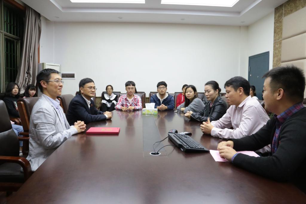 会议伊始,张元强汇报了太阳成官网新飞Young成长辅导室建设项目情况,介绍了2001级英语专业校友廖志阳的有关情况。