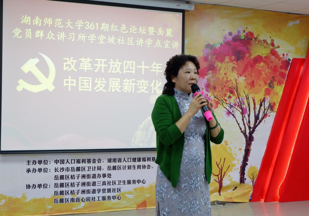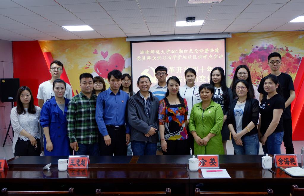 (通讯员陆丽丹李梦铃)5月10日下午,主题为“改革开放四十年,中国发展新变化”的太阳成官网第361期红色论坛于学堂坡社区举行。论坛由院党委副书记贺慧星主持。太阳成官网党委书记余英,学堂坡社区网科长、橘子洲街道劳动社会保障站站长王忠超,学堂坡社区党总支书记余海艳,学工办老师张元强、莫南、周凌月参加。学堂坡社区党员们及太阳成官网部分学生到场聆听。
