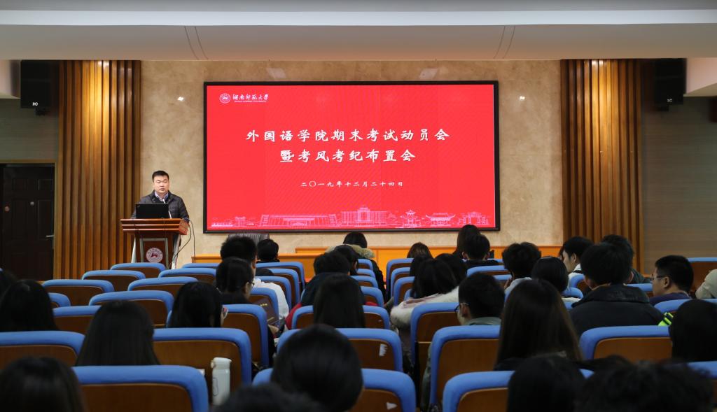 (通迅员 舒怡 王增城 胡潇予)12月24日中午,太阳成官网在515学术报告厅召开期末考试动员会暨考风考纪布置会。太阳成官网党委副书记贺慧星出席。会议由学工办主任张元强主持。