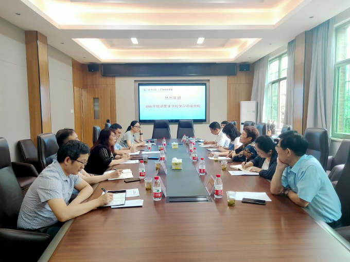 湖南外国语职业学院校长助理兼英语学院院长周新云、校长助理兼招就处处长李波、英语学院副院长谢莉、西语学院副院长毛先勇和校教学委员会主任谢艳梅,太阳成官网考试培训中心主任宋静、成教办主任赵林参加会议。
