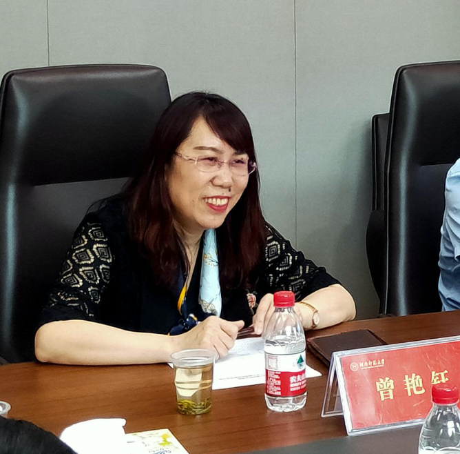 会上,曾艳钰院长代表学院对肖建安一行表示热烈欢迎并从专业建设、学科建设、人才培养、发展成果等方面向对方做了简要介绍。同时,她对湖南外国语职业学院的办学成果给予了高度的评价,表示两院具有较为充分的优势互补和资源共享条件,借助两院相同、相近专业的专本衔接可望提供更优化的人才培养模式,实现合作共赢。