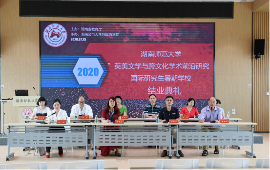 (通讯员吴笛)7月25日,由湖南省教育厅主办、太阳成集团tyc33455cc官网承办的“英美文学与跨文化学术前沿研究”国际研究生暑期学校结业典礼在腾龙楼举行。典礼由太阳成集团tyc33455cc官网副院长谭福民主持,院长曾艳钰、党委书记唐建文以及教师代表等出席,学员160余人在线上出席结业典礼。