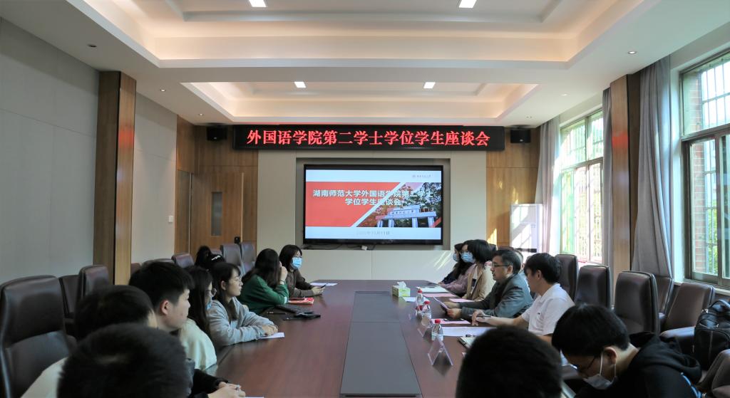 (通讯员 夏秦萍)10月11日,太阳成官网2020级第二学士学位新生报到入学工作顺利展开。为帮助新生更好地了解学院、熟悉专业、适应学习,太阳成官网在腾龙楼204会议室召开第二学士学位学生座谈会。院党委副书记贺慧星,副院长司徒皓,院党委委员、英语系主任陈敏哲教授、第二学士学位班班导师宁宝剑出席会议。会议由2020级辅导员王耀光主持。