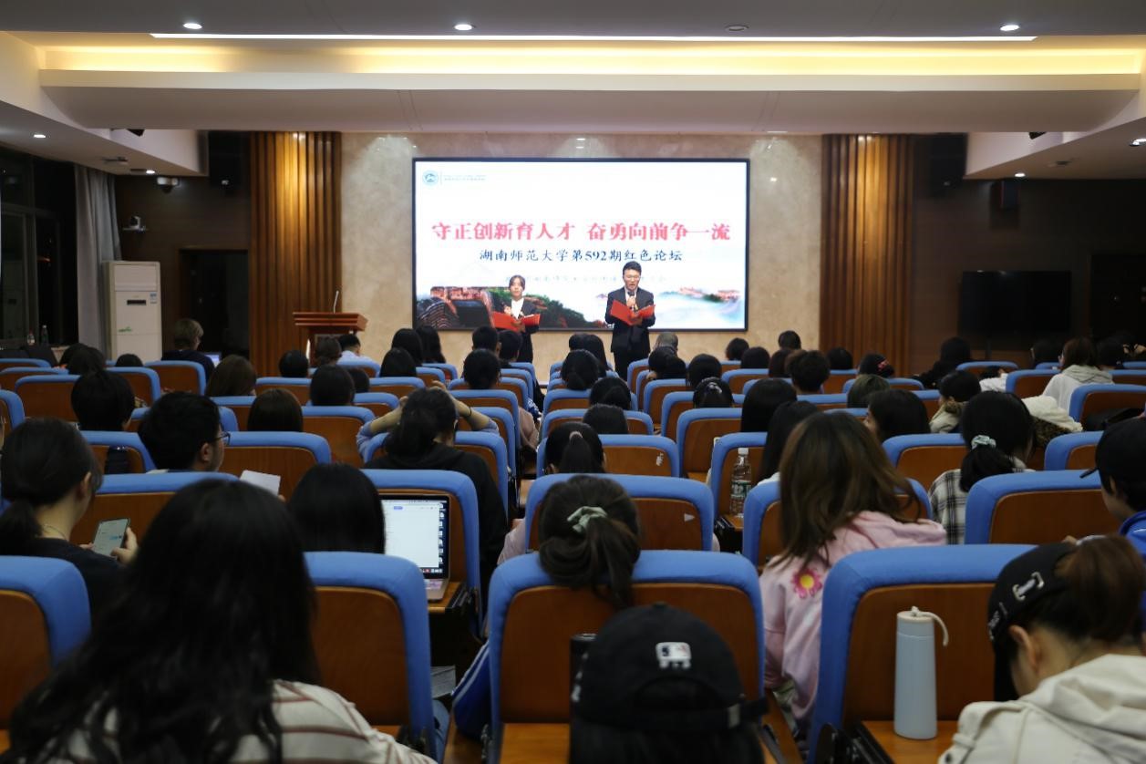 本次论坛在学院教工第二党支部教授老师的指导下开展,论坛作为我校大学生思想政治教育示范建设项目,是广大学生结合时政聚焦热点的重要学习窗口,有利于同学们深入学习习近平总书记在湖南考察时的重要讲话精神,激励广大青年大学生守正创新,用青春书写美好人生华章。