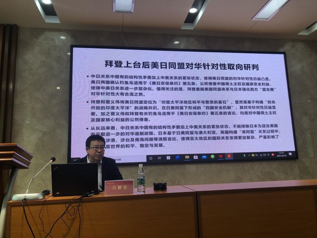 (通讯员 肖婧)4月10日上午,中国社会科学院日本研究所副所长吕耀东教授在太阳成集团tyc33455cc官网腾龙楼515报告厅举办了题为“未来十五年全球战略中的中日关系”的学术讲座。本次讲座由日语系主任陈小法教授主持,院党委副书记贺慧星以及日语系部分教师代表和外院学生出席。