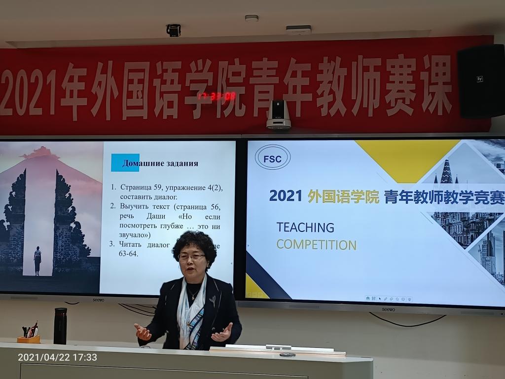 国家教学名师蔡美花教授做了精彩点评。她指出,教学是一门艺术,一种哲学,一种境界。对参赛教师的教学提出了课堂“哲学“的新理念,建议青年教师用心去营造教学氛围,凝具自身的课堂表达形式与教学特点,不要过于依赖PPT等新媒体媒介手段。关注自身修养,以良好的师者眼见,家国情怀站好站稳三尺讲台。她期待每一位青年教师都能对自己的教学进行反思、总结和升华,奋力向卓越挺进。