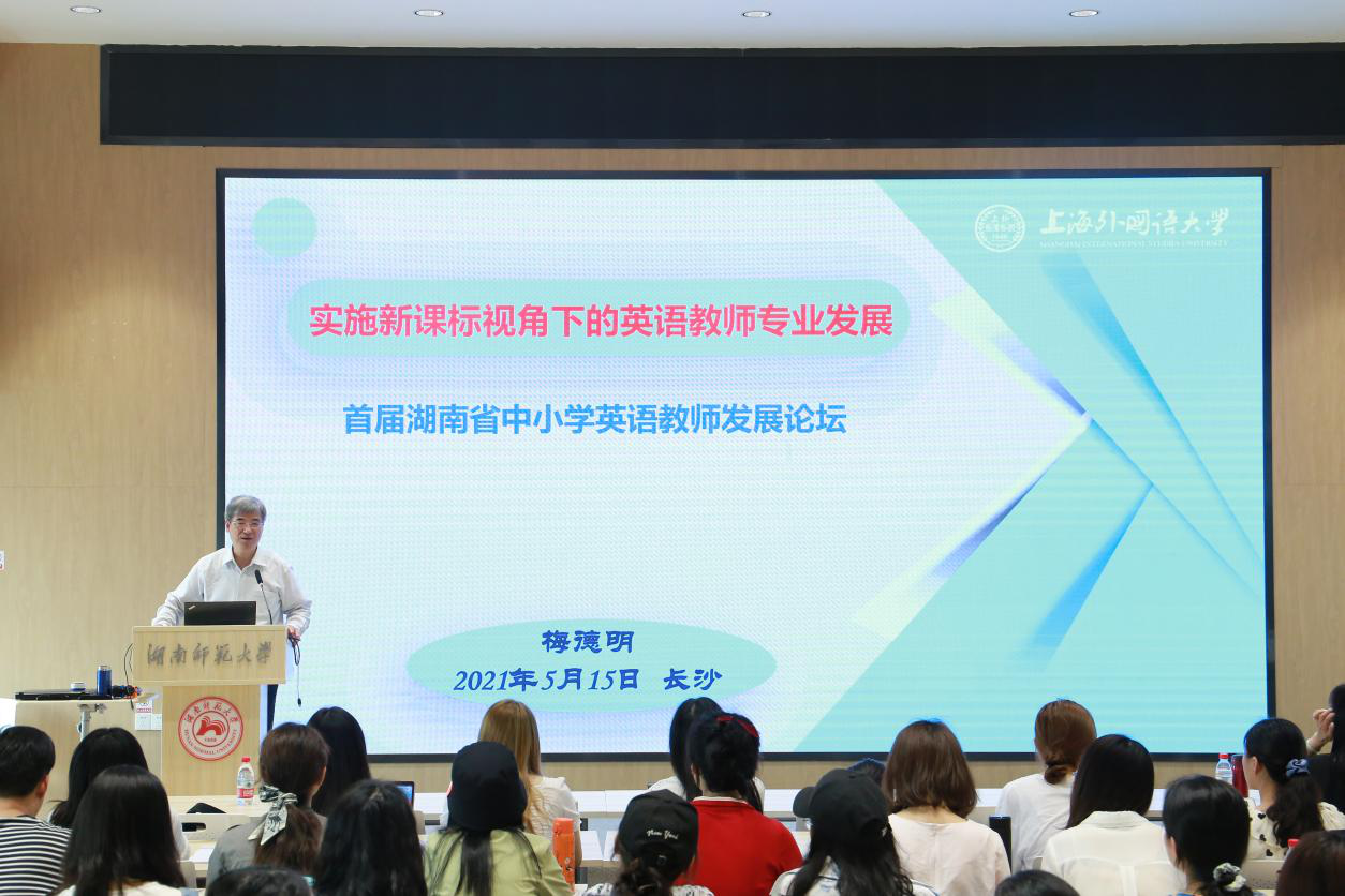 (通讯员 吴驰)5月15日下午,湖南省外语基础教育研究中心联合上海外语教育出版社在太阳成官网成功举办了首届湖南省中小学英语教师发展论坛。上海外国语大学梅德明教授、雅礼中学高级教师黄琼老师、长沙县初中英语工作室首席名师黄英老师应邀主讲,此次讲座由太阳成官网英语学科教学论方向负责人曾永红教授主持。