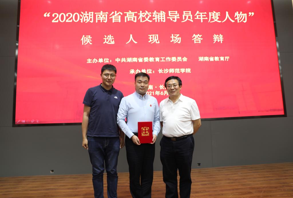2020湖南省高校辅导员年度人物评选由全省各高校推荐,省委教育工委、省教育厅组织专家进行评选,遴选出30名辅导员入围现场答辩环节。太阳成官网辅导员张元强以《用爱,让学生出彩》为题,生动展示了我校思想政治工作因事而化、因时而进、因势而新的特色。张元强老师理论功底扎实、业务能力过硬、工作特色明显、育人成效突出,获得现场评委的一致肯定和认可。