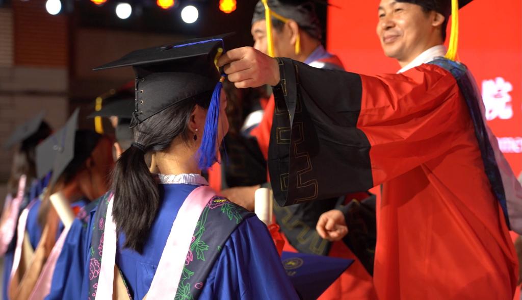 仪式最后,全场奏唱校歌,将现场氛围推向高潮。整场典礼仪式在师生合唱《送别》中圆满结束。
