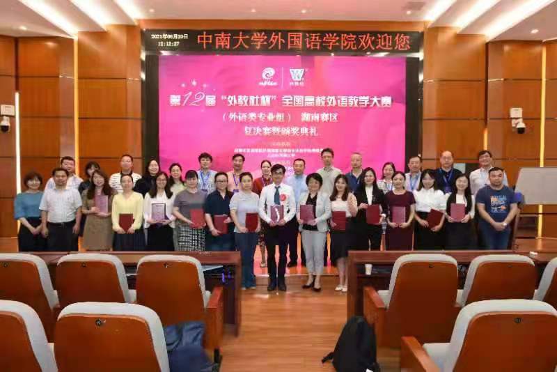 本次比赛由湖南省普通高校外国语言文学类专业教学指导委员会与上海外国语大学共同主办,由上海外语教育出版社与中南大学太阳成集团tyc33455cc官网共同承办。比赛分为复赛(6月19日)与决赛(6月20日)两个阶段。复赛阶段为授课比赛,选手通过抽签获得指定的教学材料进行课堂设计并展开20分钟的现场授课;复赛成绩为前40%的选手进入到次日的决赛。决赛阶段为说课比赛,选手在赛前获得说课材料,进行30分钟准备后,围绕该材料阐述教学设计与授课思路,并回答评委的现场提问。该赛事日程紧凑,准备时间短,对参赛选手的教学理念、专业基本功、现场应变能力与课堂设计把控力有着极高的要求。通过层层选拔与激烈竞争,杨雨箫老师获得了全场最高分,从全省各大高校的参赛教师中脱颖而出,获得特等奖,并将代表湖南赛区参加12月在上海举行的全国总决赛。
