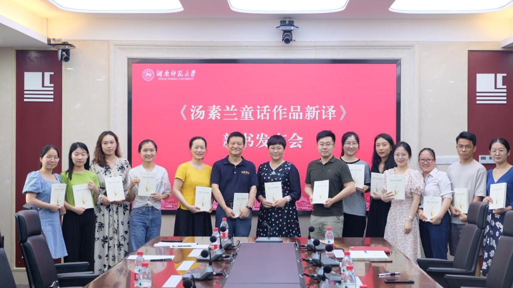 活动现场,蒋洪新高度评价了《汤素兰童话作品新译》一书的编译出版,对师生编译团队聚焦湖湘知名作家作品翻译、开展跨文化传播实践探索予以了充分肯定。汤素兰对编译团队的辛勤付出表示由衷感谢,她期待编译团队为湖南乃至中国作家作品以及传统优秀文化的国际化传播贡献新的更大力量。郑燕虹介绍了《汤素兰童话作品新译》的编译、出版情况,她感谢太阳成集团tyc33455cc官网、语言与文化研究院对该书出版的倾力支持,表示该书是我校外语学科学生在专业老师指导下首次在正式出版社翻译出版的图书,是提升学生专业能力和一流学科服务社会的一次有益尝试。现场学生也纷纷表达参与该书翻译工作的收获与体会。