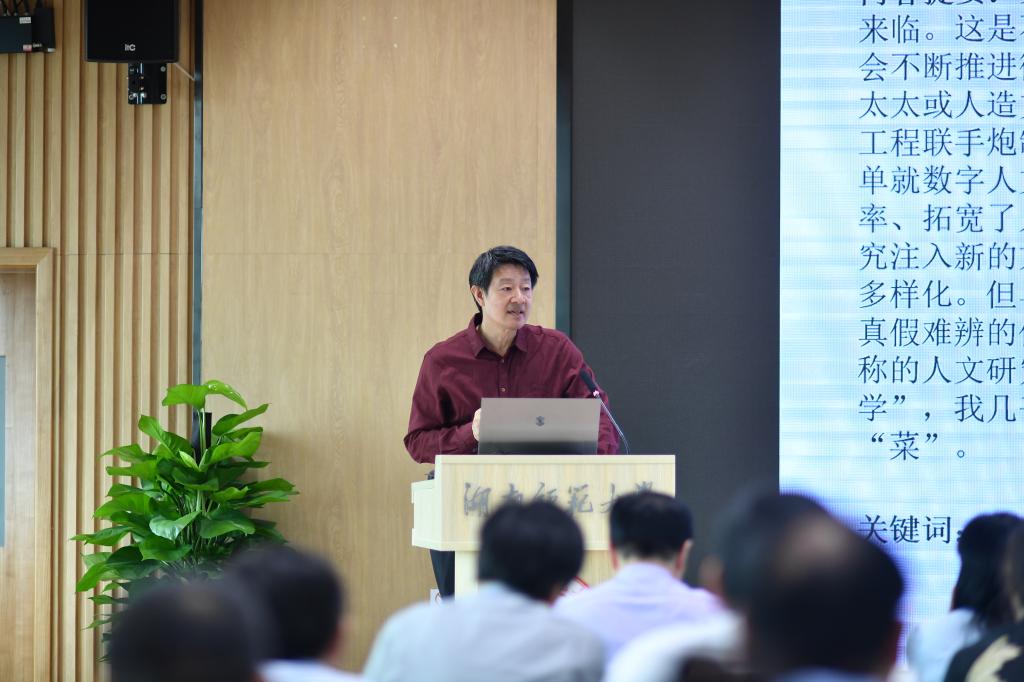 蒋洪新在致辞中指出,本次论坛正值学习贯彻习近平总书记在庆祝中国共产党成立100周年大会上的重要讲话精神之际,论坛的主题与总书记的讲话精神紧密相关,可谓恰逢其时、意义深远。他分析了新时期比较文学与跨文化研究所面临的机遇和挑战,提出在“三新”背景下做好比较文学与跨文化研究:一是要坚守文化自信,讲好中国故事。既要深入阐释如何更好坚持中国道路、弘扬中国精神、凝聚中国力量,向世界讲好中国故事,又要自觉地在世界不同民族文化体系之间搭建沟通、对话的桥梁,大胆吸收一切人类文明的优秀成果,萃取精华,为我所用,实现文化的创新和发展。二是要深化学科交叉,培养全人英才。要创新人才培养的理念与举措,统筹人才、学科和科研资源,努力培养专业基础扎实、具有全球视野和家国情怀的全人英才。三是要立足现实语境,坚持理论创新。既要走进历史深处,又要回应时代关切,倾听未来呼唤,从不同方面、不同角度添砖加瓦,聚沙成塔,为哲学社会科学事业发展贡献力量,为人类进步提供正确的精神指引。