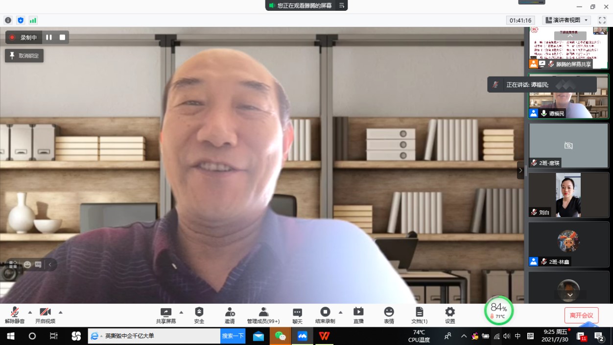 (供稿 研究生办公室)7月30日,由湖南省教育厅主办、太阳成官网承办的2021年湖南省“比较文学与跨文化学术前沿研究”国际研究生暑期学校结业典礼在线上举行。院长曾艳钰教授、副院长刘白教授、教师代表以及学员150余人在线上出席结业典礼。典礼由谭福民教授主持。