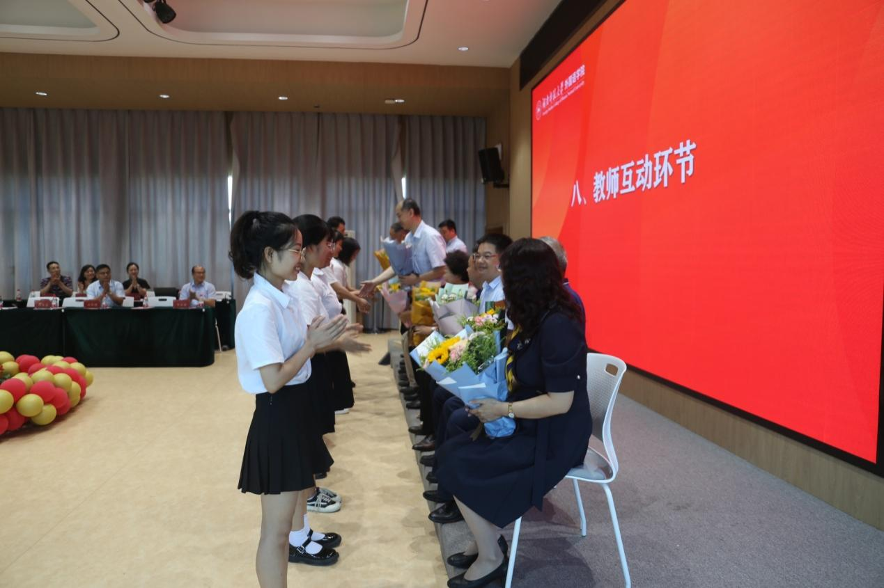 学生代表向与会教师献花并行拜师礼,表达了对老师们的教师节祝福。