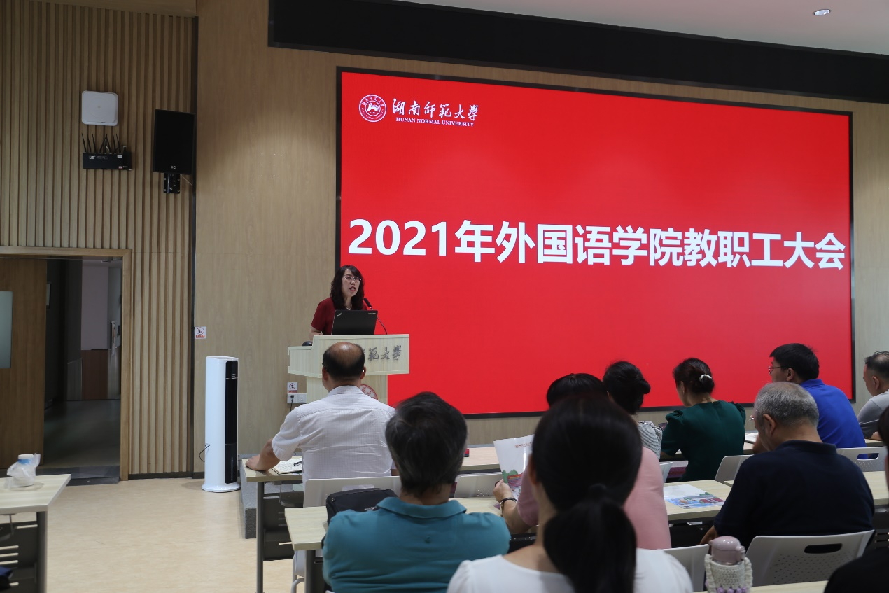 曾艳钰通报了暑期各项工作的推进情况,传达学校新学期工作会议精神,布置新学期学院重点工作:一是要做好迎新工作,结合外国语言文学大类招生和新生入住咸嘉湖校区综合大楼的新情况,要关心学生成长,做好入学教育和排课等工作;二是要做好人才培养工作,要敢于创新,打破常规教学模式,培育“新文科”人才;三是要重视师资队伍建设,更加注重青年教师的培养,促进教师多元化发展,提升学院教师团队内生动力;四是要推进科学研究和社会服务,大力推进科研团队建设,做好乡村外语教育实践基地的建设;五是要加强管理与服务,理顺机制、处理好系部科室关系,共建幸福外院。