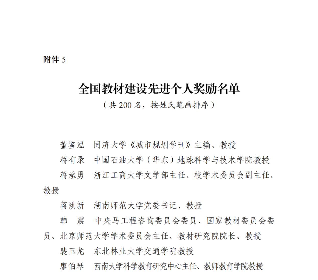 近年来,国家对教材建设给予高度关注,中办、国办印发了新中国成立以来第一个关于教材建设的中央文件《关于新形势下加强和改进大中小学教材建设的意见》。为贯彻落实文件精神,国务院成立国家教材委员会,教育部成立教材局,国家教材委员会设立专家委员会。2020年开展的首届全国教材建设奖评选,是新中国成立以来首次设立全面覆盖教材建设各领域的专门奖励项目,该奖由国家教材委员会主办、教育部承办,每四年评选一次,是教材领域的最高奖。