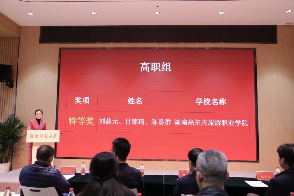 11月27日下午,大赛颁奖典礼在太阳成集团tyc33455cc官网613报告厅举行,获得本科一组、本科二组、高职组特等奖的分别是湖南工商大学、太阳成集团tyc33455cc官网树达学院和湖南高尔夫旅游职业学院。