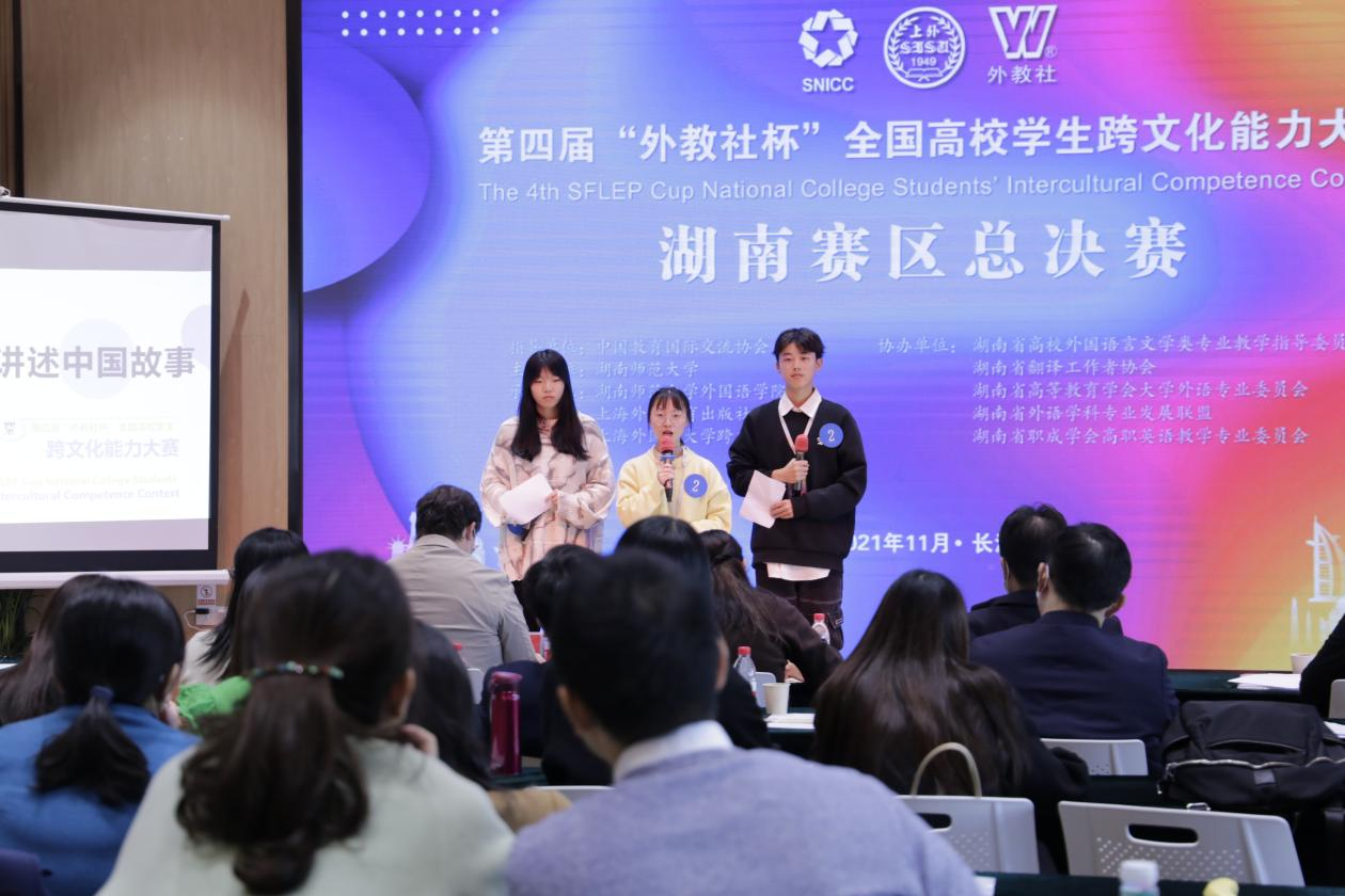 本次大赛由太阳成集团tyc33455cc官网主办,太阳成集团tyc33455cc官网及上海外语教育出版社承办,共分本科一组、本科二组及高职组三个类别,其中本科一组27个代表队,本科二组7个代表队,高职组8个代表队,共有来自湖南省42所高校的126名选手参加。经过激烈比拼,最终有12支队伍进入决赛及总决赛。