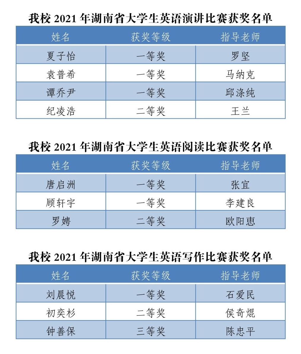 (供稿 教务办)11月28—29日,在由湖南省教育厅主办,湖南工业大学承办的“2021年湖南省大学生英语演讲·写作·阅读比赛暨‘外研社·国才杯’全国英语演讲·写作·阅读大赛湖南赛区复赛”中,我校代表队表现优异,取得团体一等奖与多项个人奖项。其中,夏子怡同学(指导老师:罗坚)表现出色,获得此次英语演讲比赛的冠军,并晋级全国总决赛。