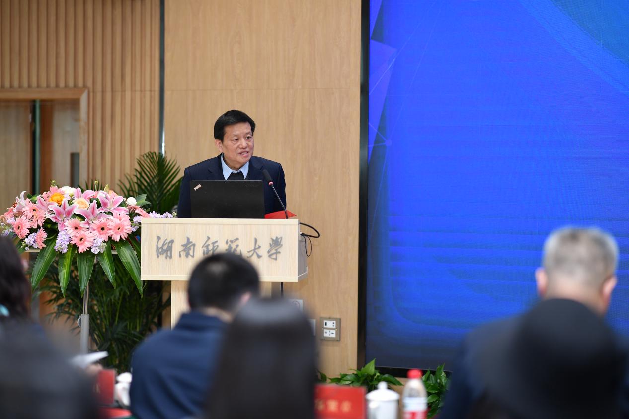 蒋洪新代表我校欢迎各与会嘉宾,并对省教育厅长期以来对学校和全省外语学科发展的关心支持和精心指导表达了衷心的感谢。他指出,习近平总书记多次强调,“要讲好中国故事,传播好中国声音,展现真实、立体、全面的中国”,外语学科发展肩负传播中华文明的光荣使命。院长、系主任都是学科发展的灵魂人物,要继续深化合作,抢抓“新文科”“大外语”“双万计划”等发展契机,深入研究商讨学科建设的好理念、好思路、好举措,带领团队在学科管理、课程建设、教学改革、科学研究、社会服务等方面积极探索与实践,培养更多融通中外的新时代外语专业复合型人才,在协同发展中一起开创外语教育事业的新格局,为服务“三高四新”战略、推动中华文化走出去、构建人类命运共同体做出新的更大贡献。