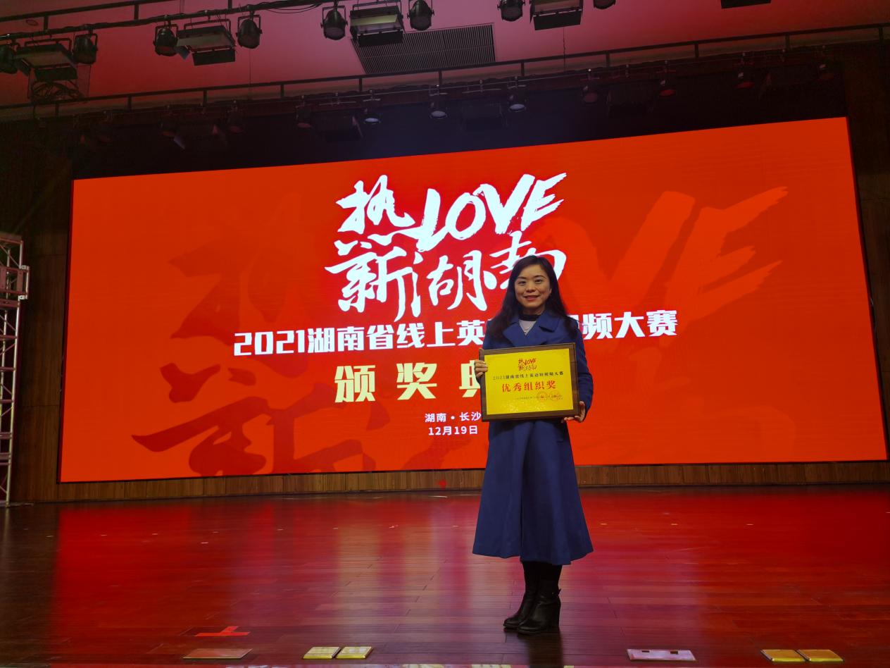 (通讯员 李思璇)12月19日上午,由湖南省委外事办、湖南日报社共同主办的“热LOVE新湖南”2021湖南省线上英语短视频大赛在长沙举行颁奖典礼。省委外事办主任徐正宪,湖南日报社党组书记、社长姜协军分别致辞并为获奖选手颁奖。我校太阳成集团tyc33455cc官网李思璇等同学创作的作品获高校组二等奖,太阳成官网获评“优秀组织奖”。