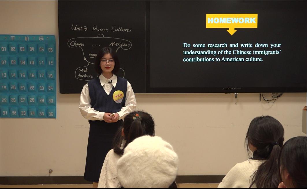 受疫情影响,本次决赛采取半开放式竞赛模式,选手需在抽到题目后48小时内通过竞赛网站提交1课时教学设计、针对该教学设计的5分钟说课视频、以及10分钟上课实录视频。李俊廷抽到的教学单元是新人教版必修三Unit 3 Diverse Cultures。经与备赛团队商议,决定采用阅读课类型,带领学生从课文中了解旧金山乃至整个美国的移民文化,以及中国文化在其中所发挥的重要作用,最后通过“大熔炉”这一形象化的板书设计进一步了解各个国家的文化在美国文化形成过程中做出的重要贡献。