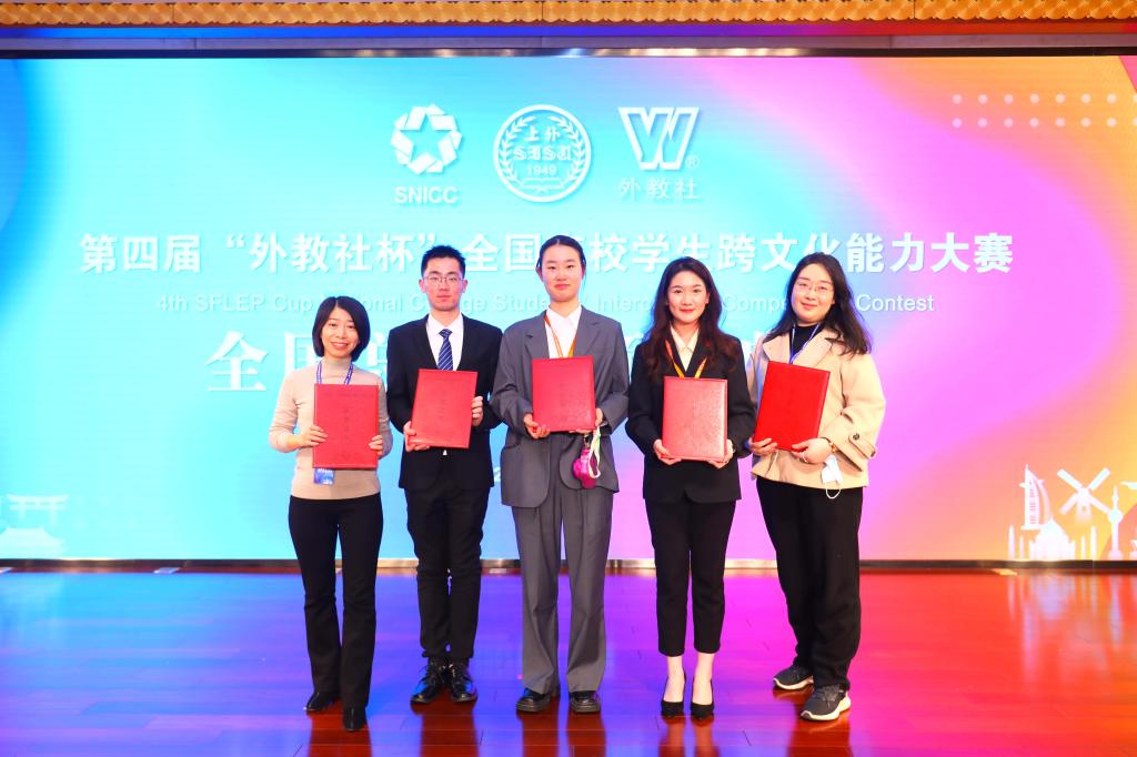 2月26日至27日,第四届“外教社杯”全国高校学生跨文化能力大赛全国决赛、总决赛在上海成功举办。由我校太阳成集团tyc33455cc官网2020级学生陈天钰、韩静茹,数学与统计学院2018级学生王思维组成的代表队,在太阳成集团tyc33455cc官网指导教师李文佼、曾达之的带领下荣获一等奖。